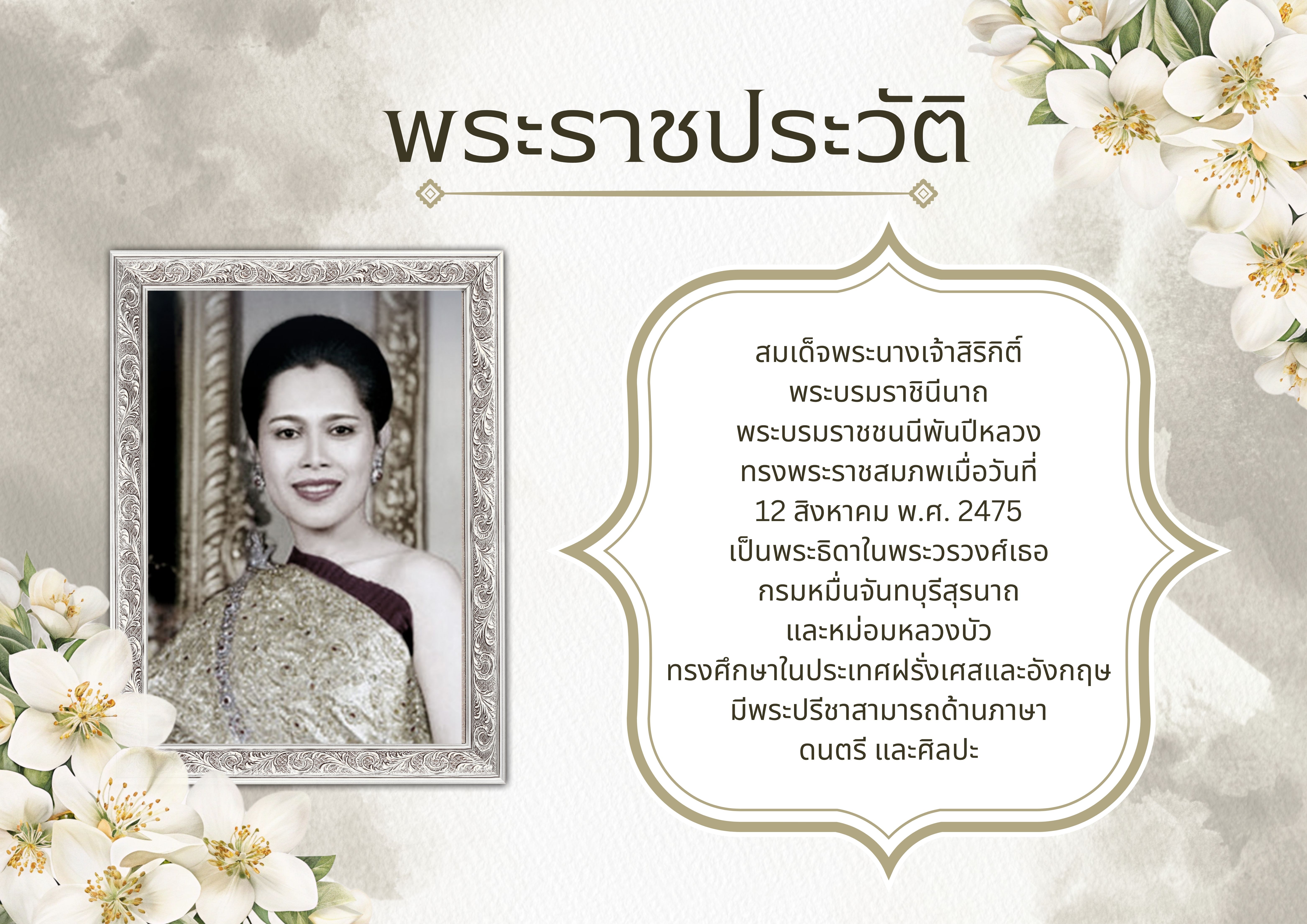 พระราชประวัติสมเด็จพระนางเจ้าสิริกิติ์ พระบรมราชินีนาถ พระบรมราชชนนีพันปีหลวง วันที่ดำเนินการ : 30 ต.ค. 2568